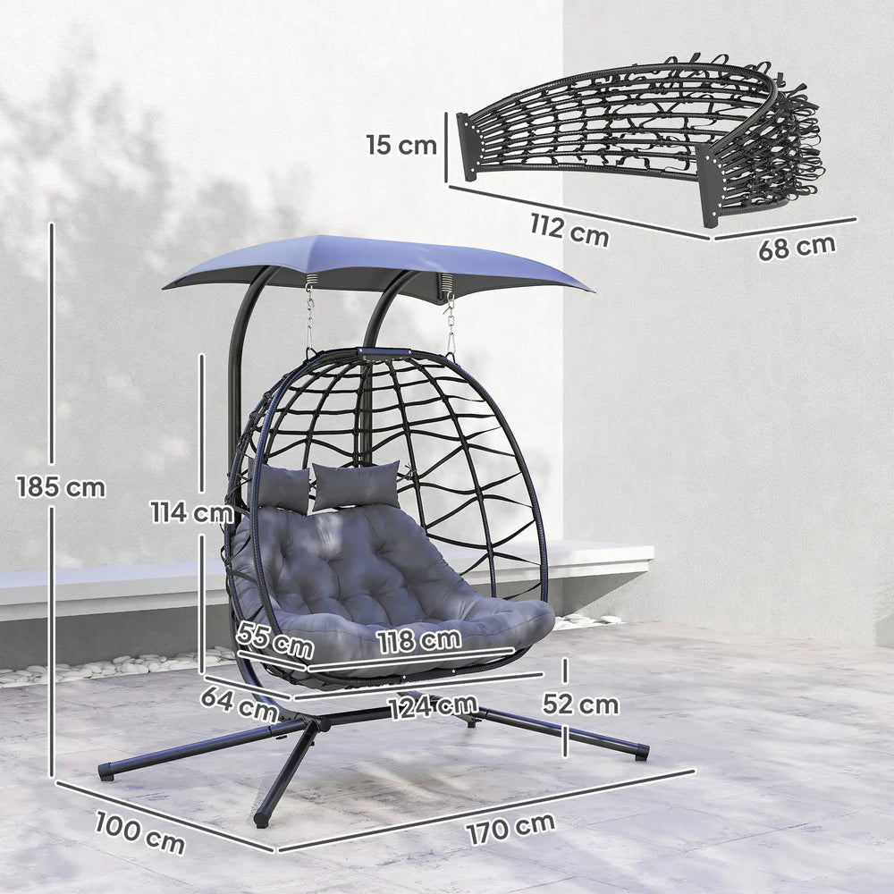 Sit in comfort together, with safe protection - this Outsunny double rattan swing chair. With a powder coated steel frame, you can be sure of a strong, supportive core - comes in a cut-out rattan design for plenty of garden style. The top canopy provides safe protection against direct sun. Complete with a thick padded seat cushion for all the comfort.