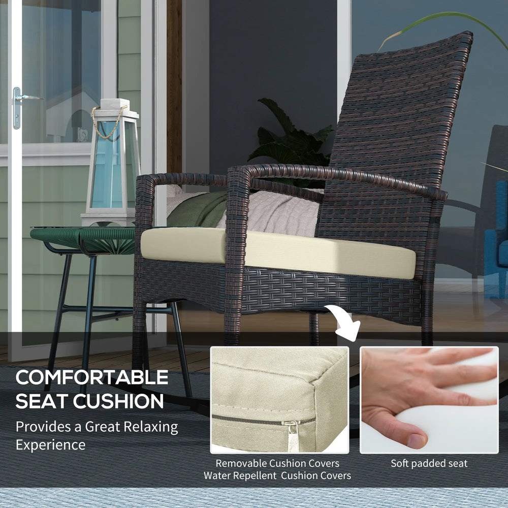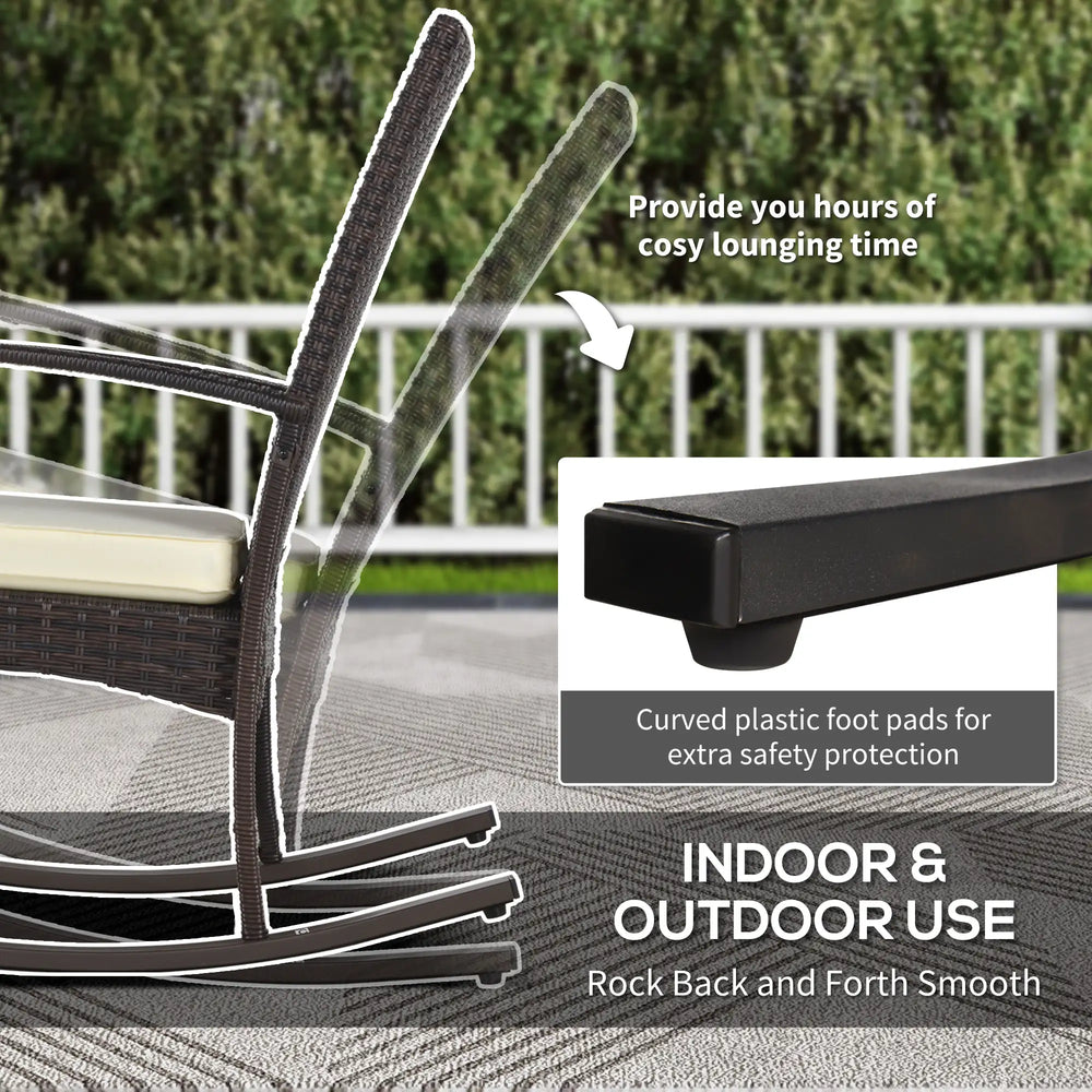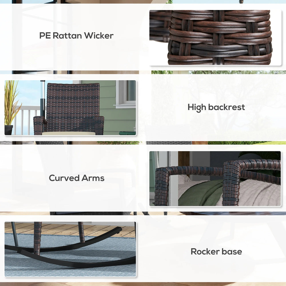 Outsunny Outdoor PE Rattan Rocking Chair Set of 2, Garden Rocking Chair Set with Armrest and Cushion, Brown