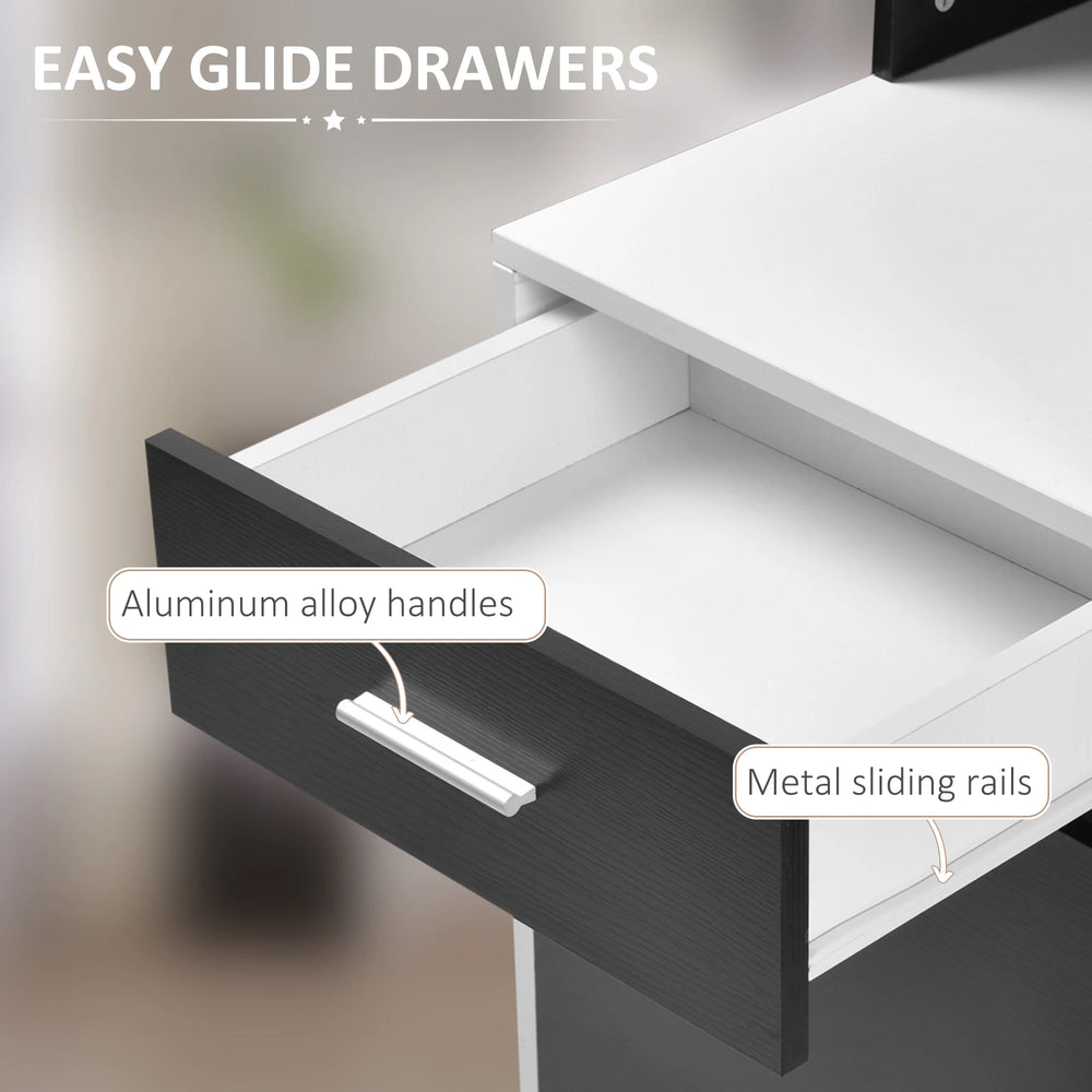 HOMCOM Computer Desk with Drawers and Storage Shelves, Office Desk Writing Table with Printer Stand, Large Workstation for Study Play Work Home Office, 137 x 55 x 92cm, Black and White is backordered and will ship as soon as it is back in stock.