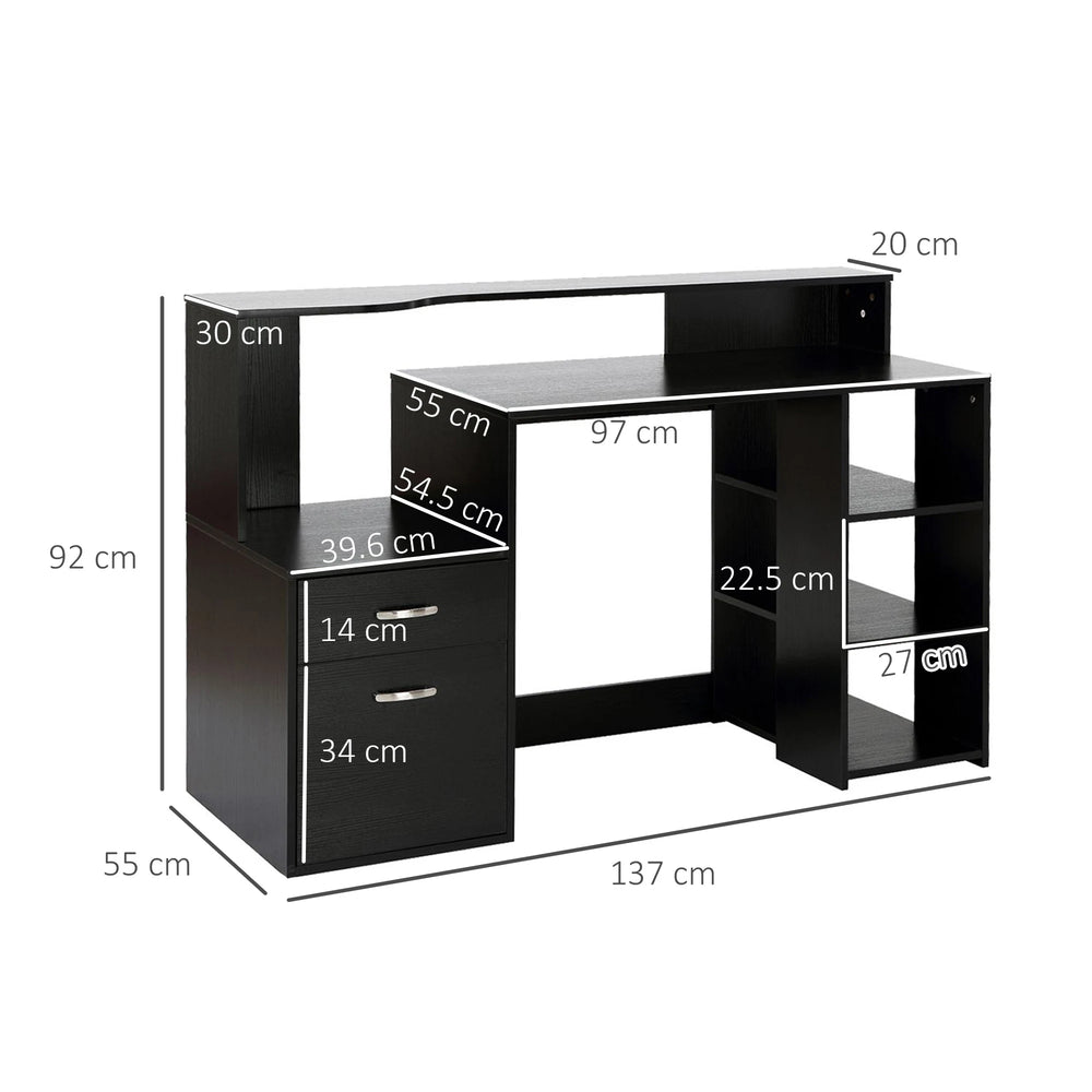 HOMCOM Computer Desk with Drawers and Storage Shelves, Office Desk Writing Table with Printer Stand, Large Workstation for Study Play Work Home Office, 137 x 55 x 92cm, Black is backordered and will ship as soon as it is back in stock.