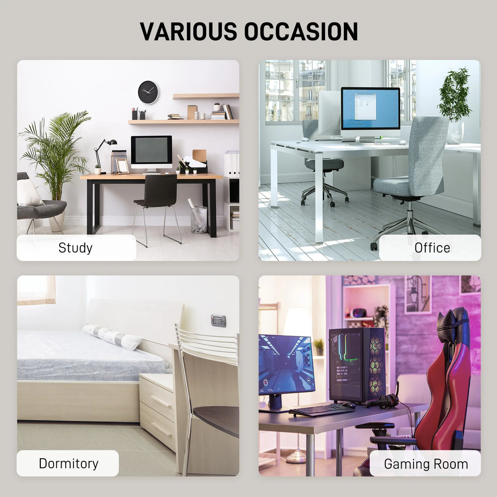 Modern and sleek, this work desk from HOMCOM looks as good as it feels when working, supporting you properly when you need to focus hard. Its 'L' shaped design fits perfectly into corners to help utilise space more efficiently. The frame is made from steel frame for a tough structure, fitted with MDF shelves so you can work well. There's plenty of space to work and have your computer and other devices on top. It's finished with a three-drawer cabinet so you can keep papers and more safely stored.
