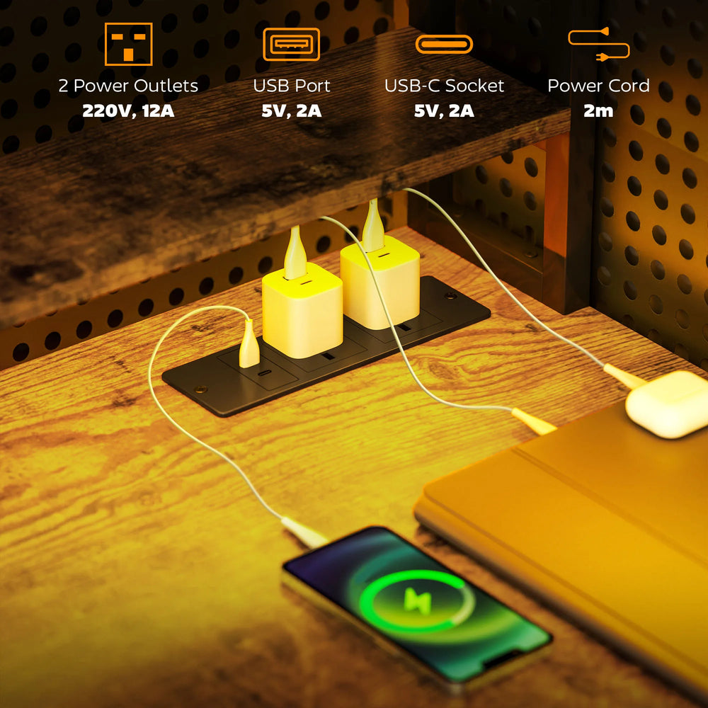 - Integrated charging: Comes with two power outlets and two USB ports - Keep devices powered whilst using this computer desk