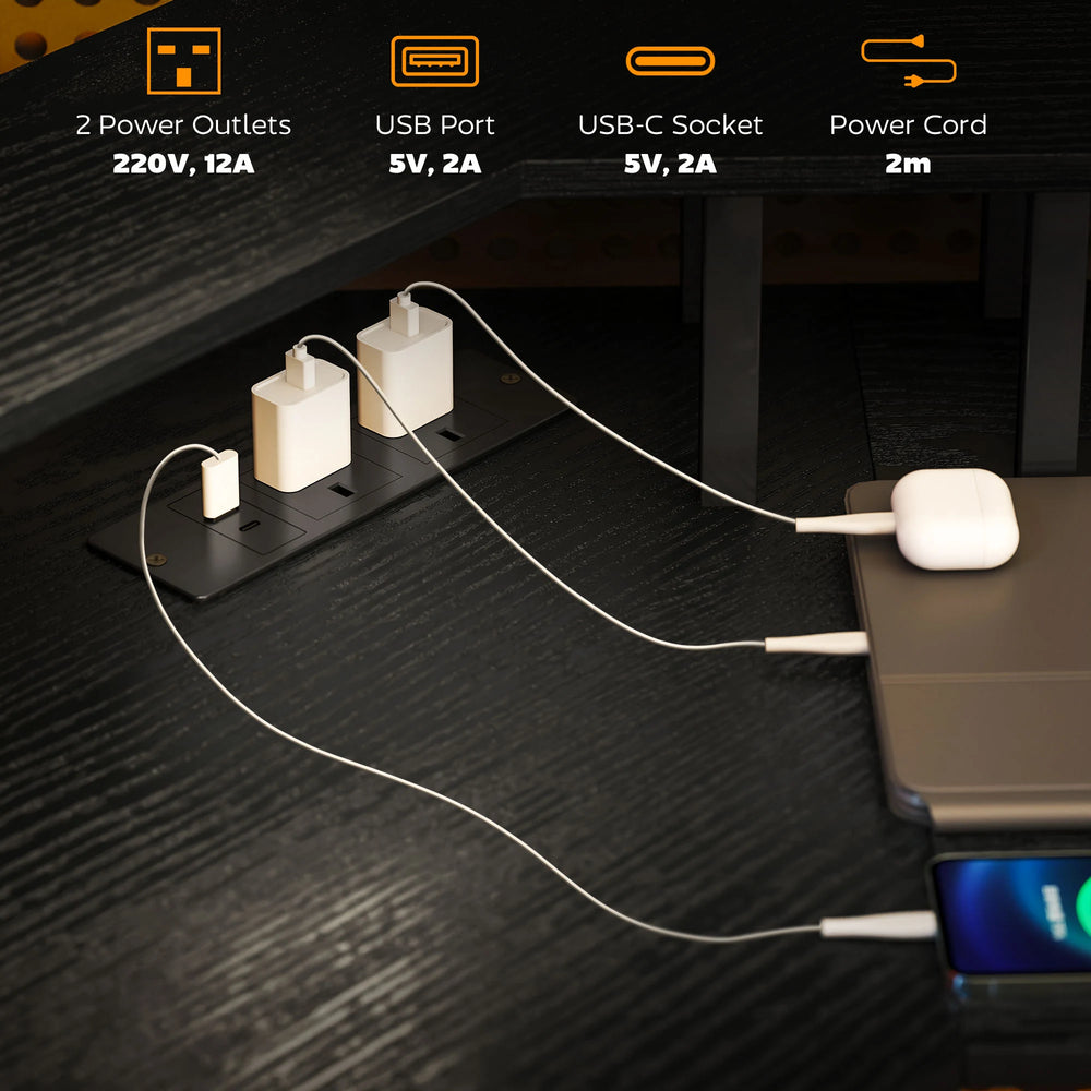 - Multi-charging ports: Two power outlets, a USB port and a USB-C socket - keep devices always charged with this corner desk, right next to you.