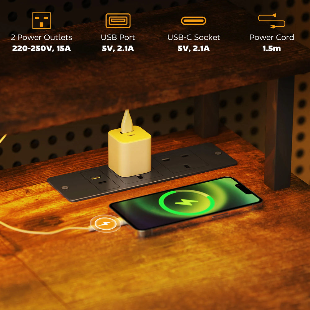 - Built-in charging station: This study desk keeps devices powered up by you, as you work. Two UK plug sockets, a USB port and a USB-C socket - lots of charging power
