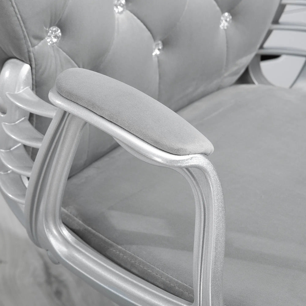 Vinsetto Office Chair, Swivel Desk Chair, Velvet Vanity Chair with Adjustable Height and Rolling Wheels for Home Work Study, Grey