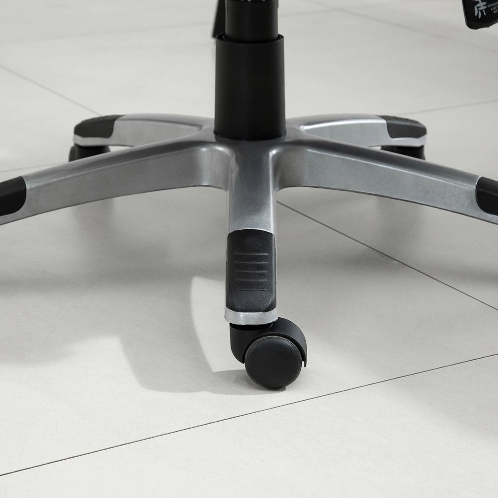 Give yourself a proper place to sit whilst working - this Vinsetto high back office chair. It comes with a wide seat, fixed armrests and a high back to support your body. Thick padding keeps you comfortable for long periods. 45-56cm adjustable height to sit at a level best for you. Five wheels on the base and a 360 swivel seat to move around freely and easily.