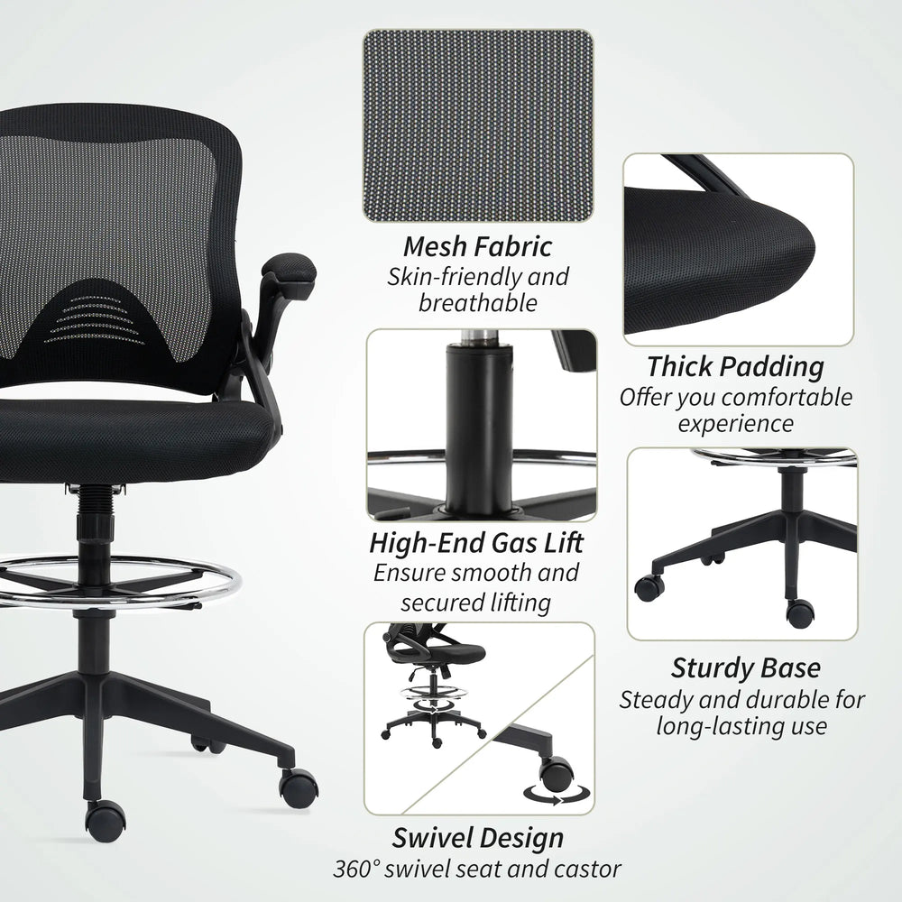 Vinsetto Drafting Chair with Flip-up Armrest, Mesh Office Stool with Foot Ring, 360 Degree Swivel Height Adjustable Chair for Standing Desk, Black is backordered and will ship as soon as it is back in stock.