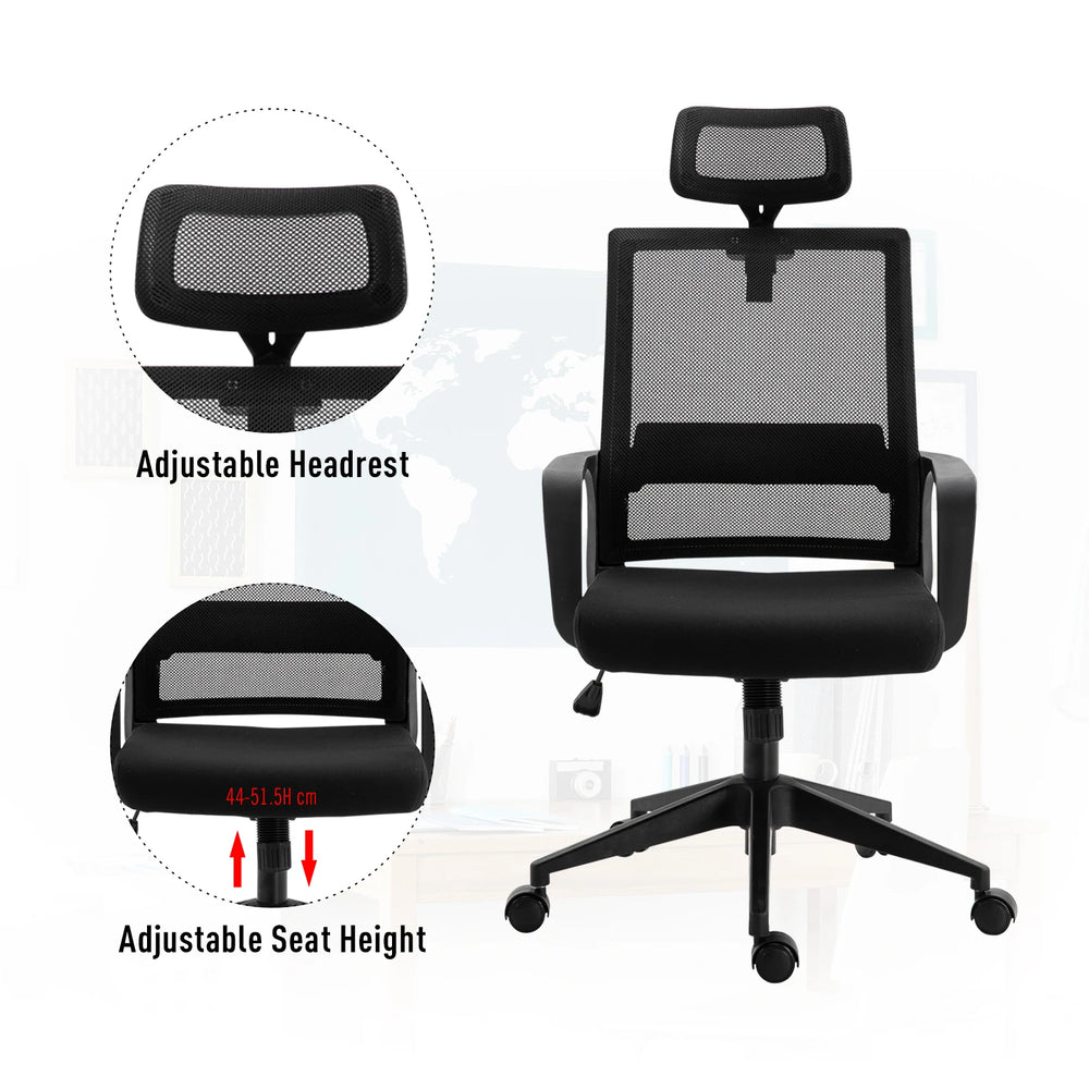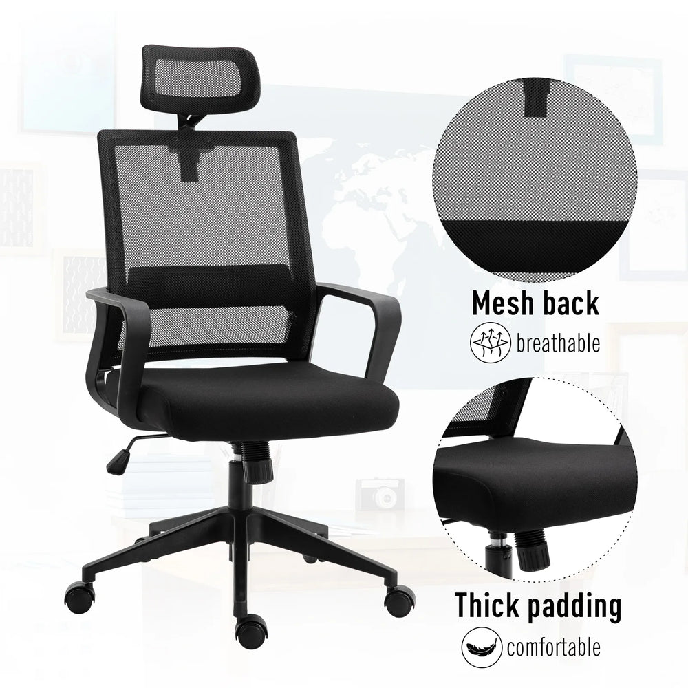 HOMCOM Mesh Swivel Office Chair with Adjustable Headrest, Lumbar Support, Home Task High Back Chair Adjustable Height, Black