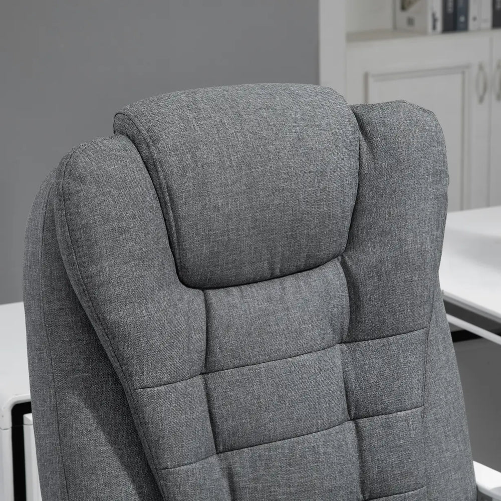 Vinsetto Office Chair, Computer Desk Chair, Linen Fabric Swivel Rolling Task Chair with Large Soft Padded Cushion, 135 Reclining Backrest and Retractable Footrest, Grey