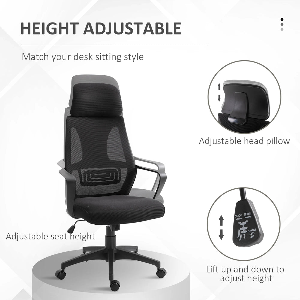 Vinsetto High Back Office Chair with Headrest, Adjustable Height, Mesh Material for Office Use, Black