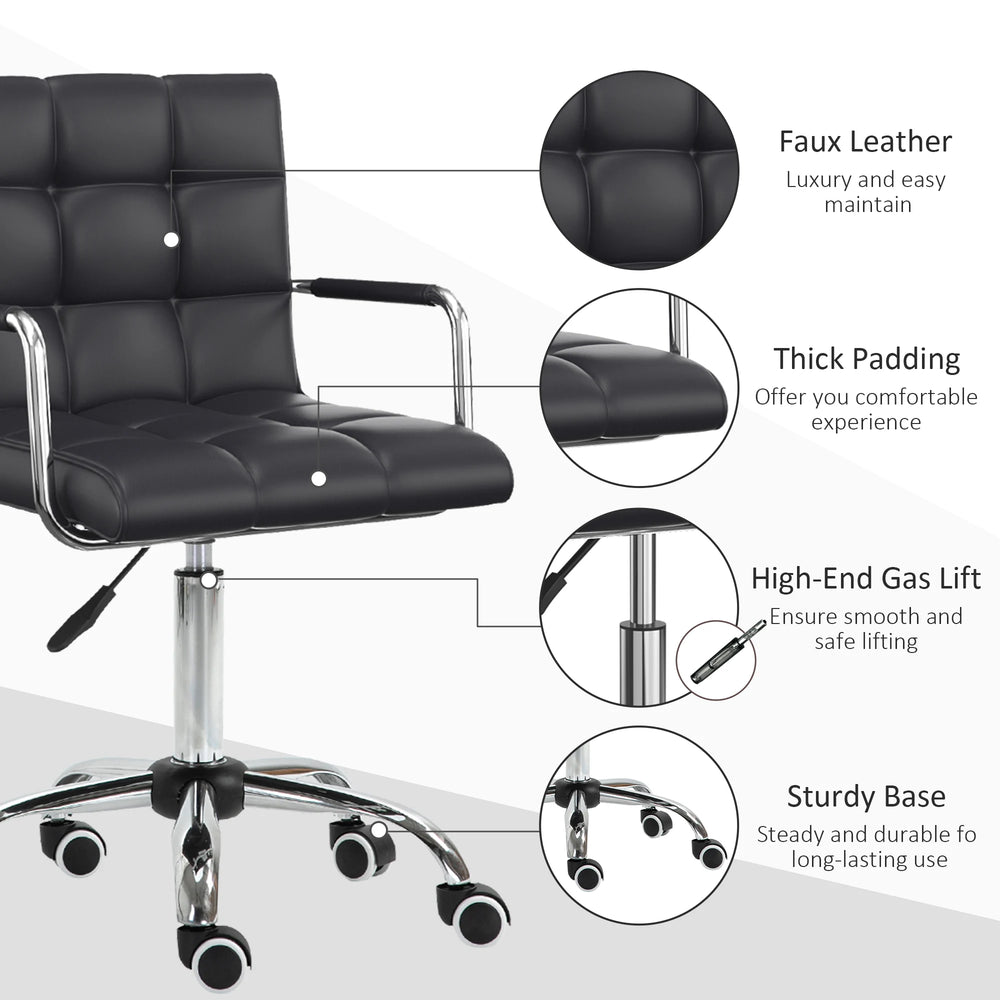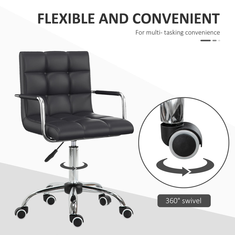 Vinsetto Makeup Vanity Chair, PU Leather Mid Back Office Chair with Adjustable Height, Armrest and Rolling Wheels, Black