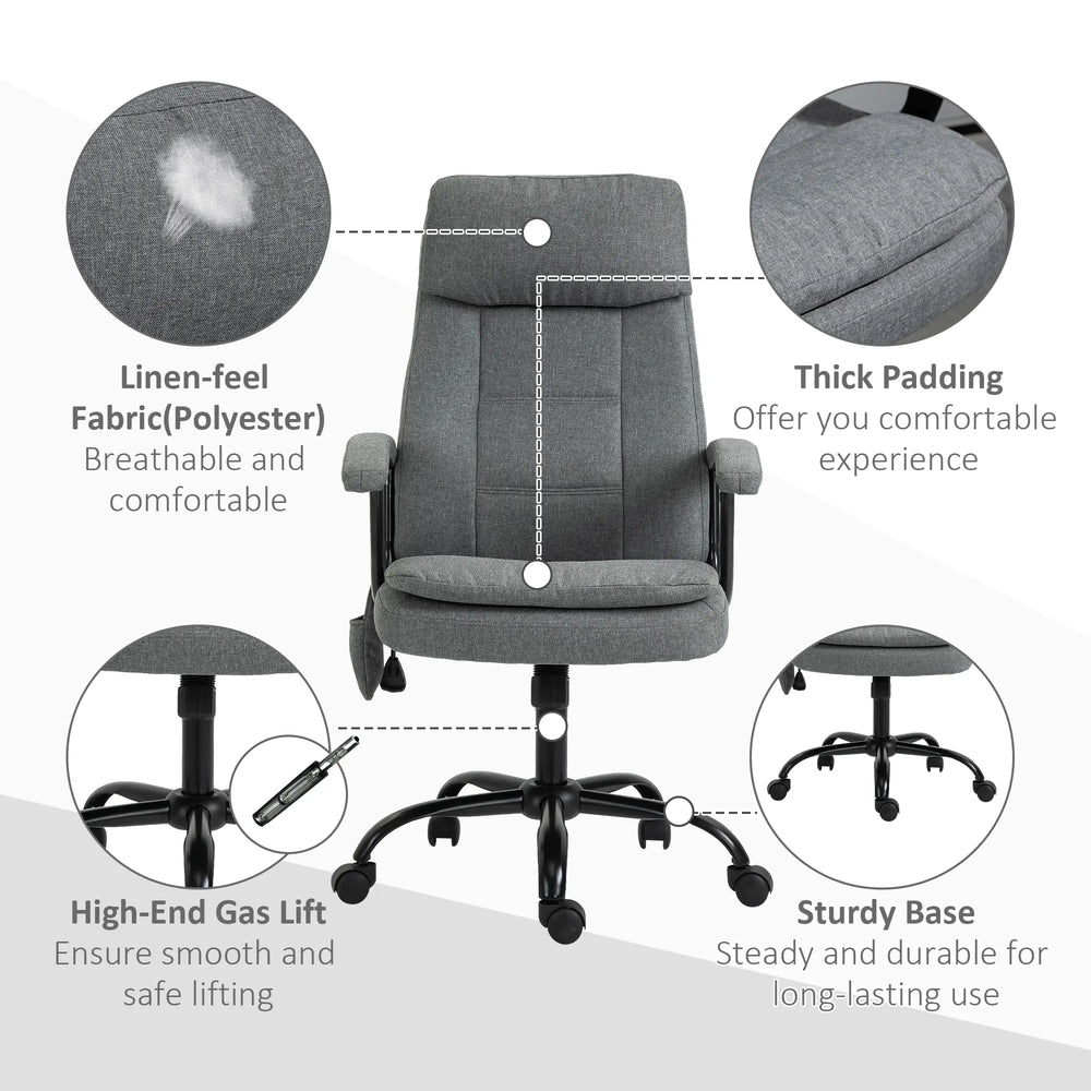 Vinsetto Office Chair, Linen Fabric Desk Chair with 2 Point Massage in Lumbar, Adjustable Height, Rolling Wheels, Grey