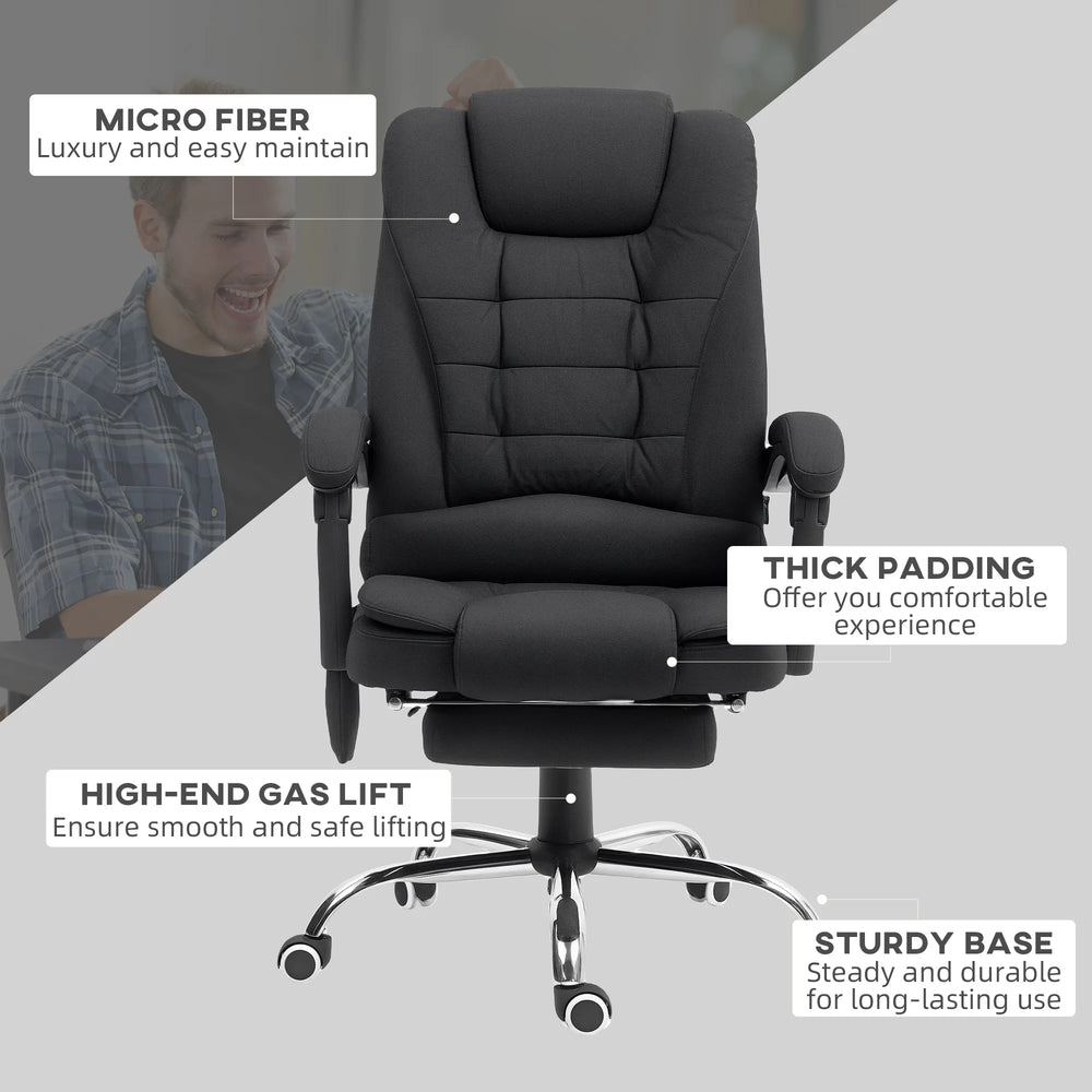 Vinsetto Office Chair with 6 Point Massage and Back Heat, Microfibre Desk Chair with Footrest Adjustable Height and Swivel Wheels, Back Reclining, Full Black
