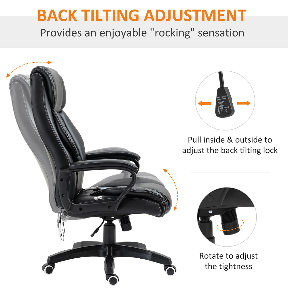 Vinsetto Office Chair with 6-Point Maaage, PU Desk Chair with Padded Seat and Armrest, Computer Chair with Tilt Function for Home, Black