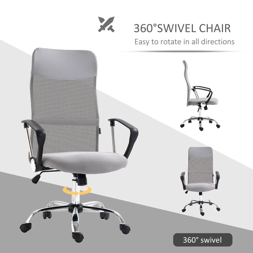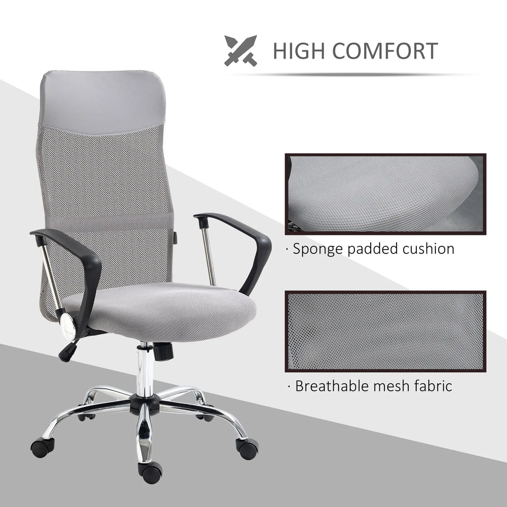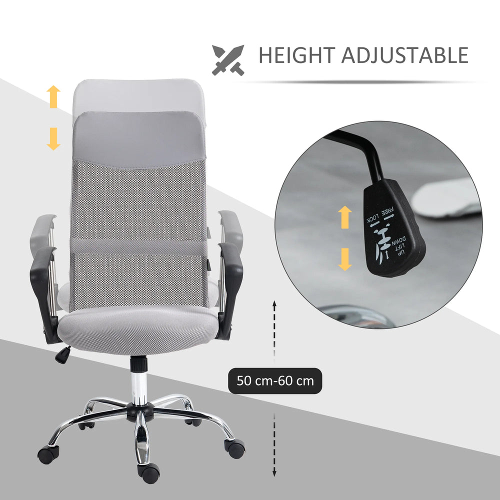 Vinsetto Ergonomic Office Chair Mesh Chair with Adjustable Height Tilt Function Light Grey