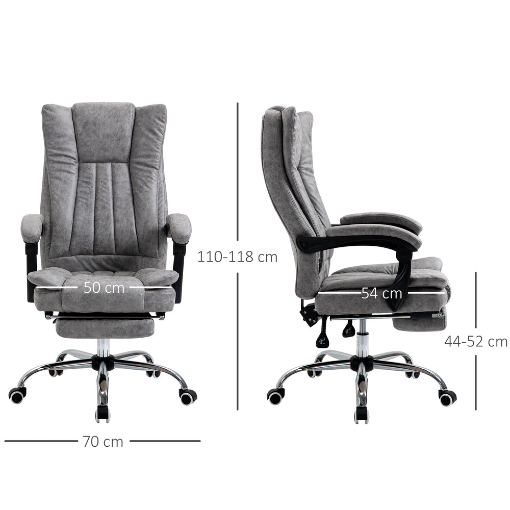 Vinsetto Home Office Chair Microfibre Desk Chair with Reclining Function Armrests Swivel Wheels Footrest Grey