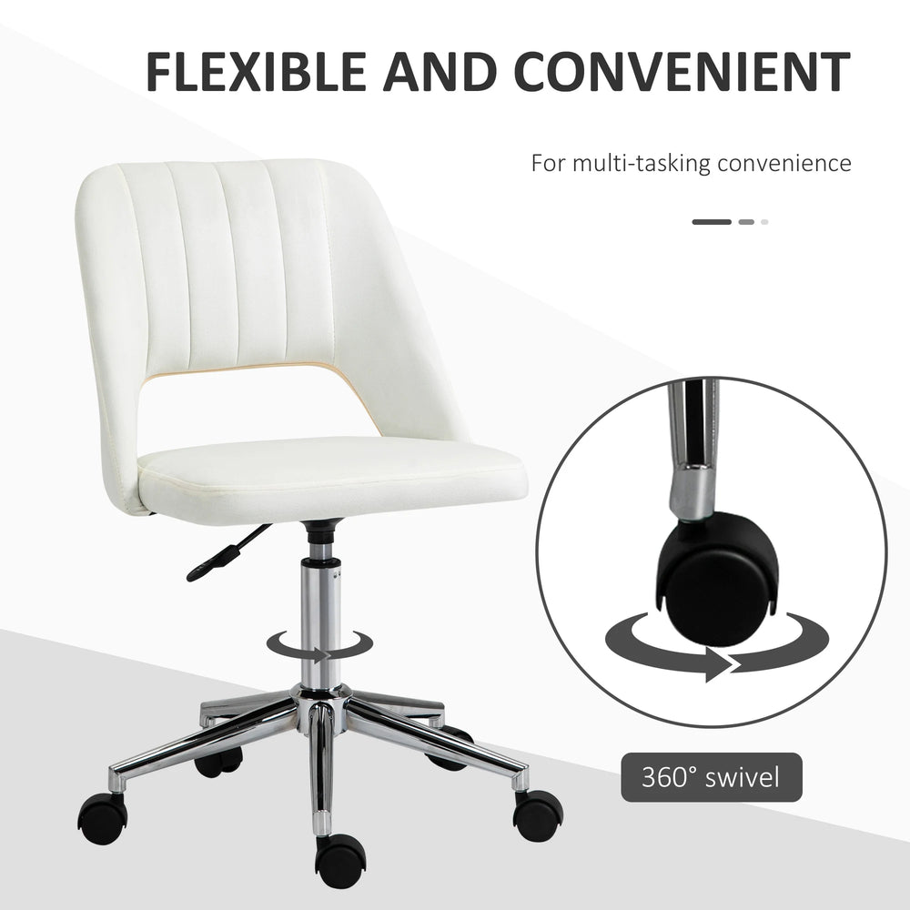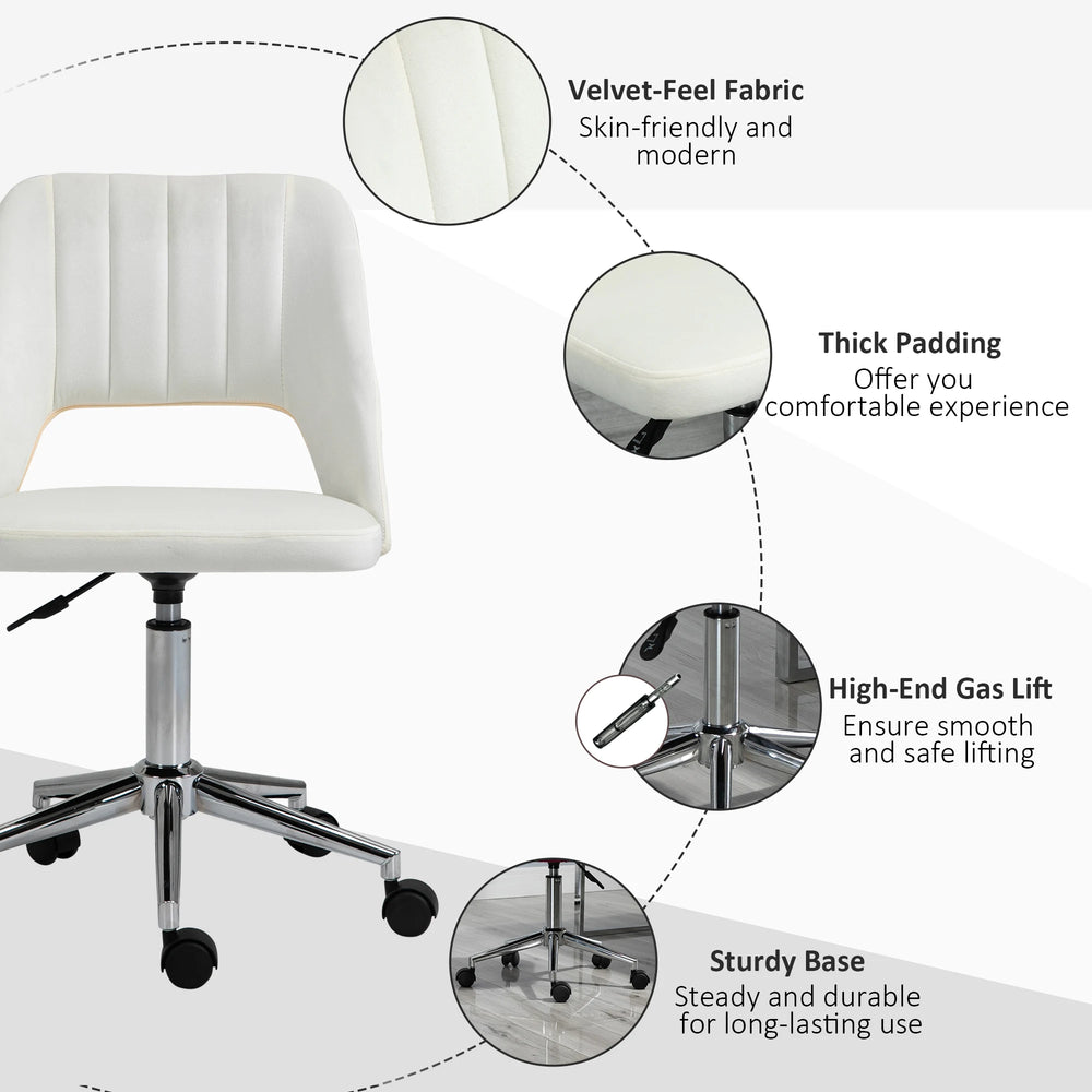 Vinsetto Armless Velvet-Feel Office Chair - Cream White