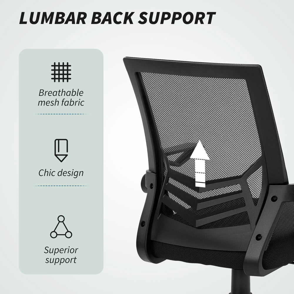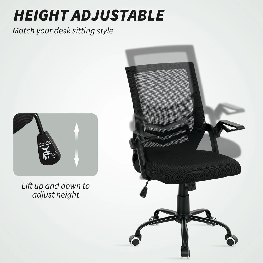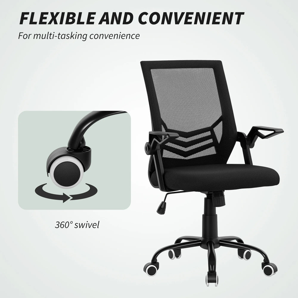 Vinsetto Mesh Office Chair, Computer Desk Chair with Flip-up Armrests, Lumbar Back Support and Swivel Wheels, Black