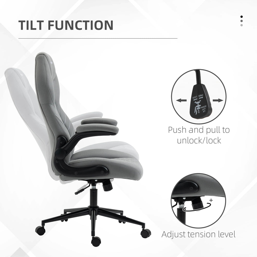 Vinsetto Home Office Desk Chair, Computer Chair with Flip Up Armrests, Swivel Seat and Tilt Function, Light Grey