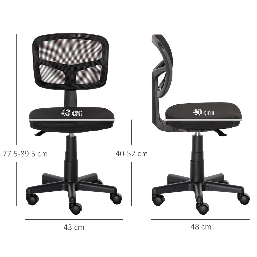 Vinsetto Small Office Chair without Arms, Ergonomic Swivel Mesh Desk Chair with Curved Back and Wheels, Height Adjustable, for Home Vanity Computer Dressing Table Study Bedroom, Holds Up to 120 kg