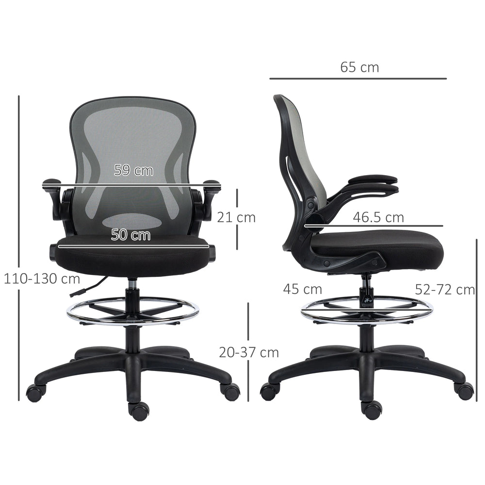 Vinsetto Adjustable Mesh Standing Desk Chair with Flip-up Armrests Lumbar Support Armrests Adjustable Footrest Ring, Dark Grey