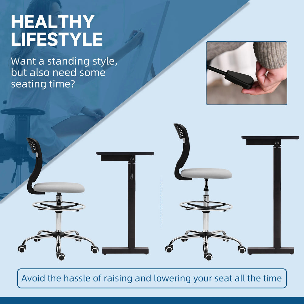 Vinsetto 68-88cm Draughtsman Office Chair, with Wheels - Light Grey