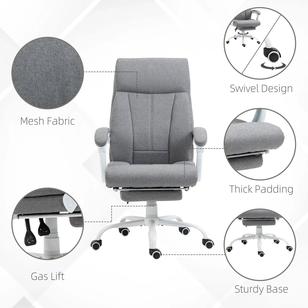 Vinsetto Office Chair, Ergonomic Desk Chair, Fabric Work Study Chair with 155 Reclining Back and Footrest, Adjustable Height and Swivel Wheels, Grey