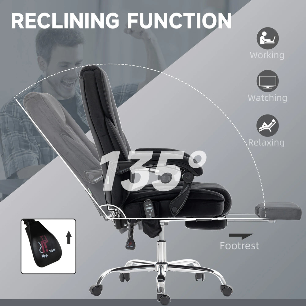 Vinsetto Heated Reclining Massaging Office Desk Chair with Footrest Massage Black