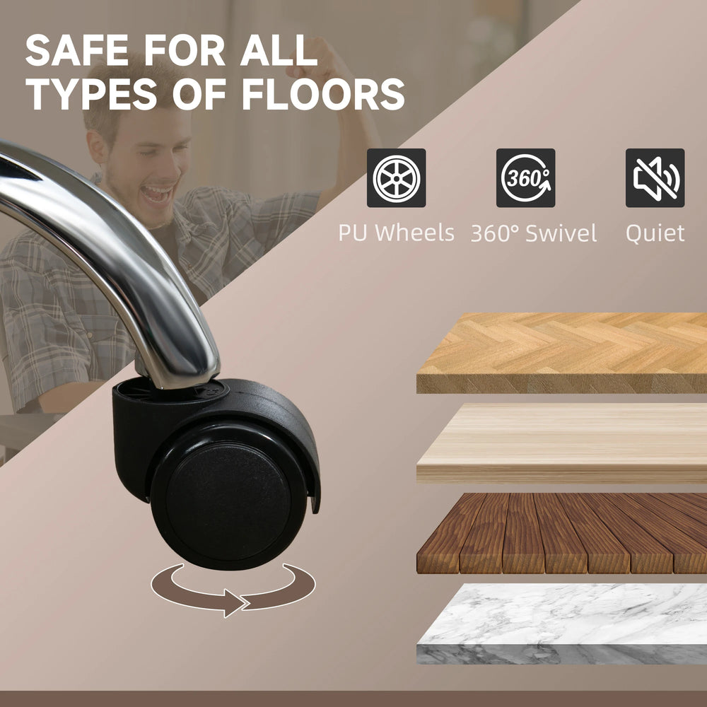 - Move freely on PU wheels designed for all floor types, including hardwood, tile, laminate and slate