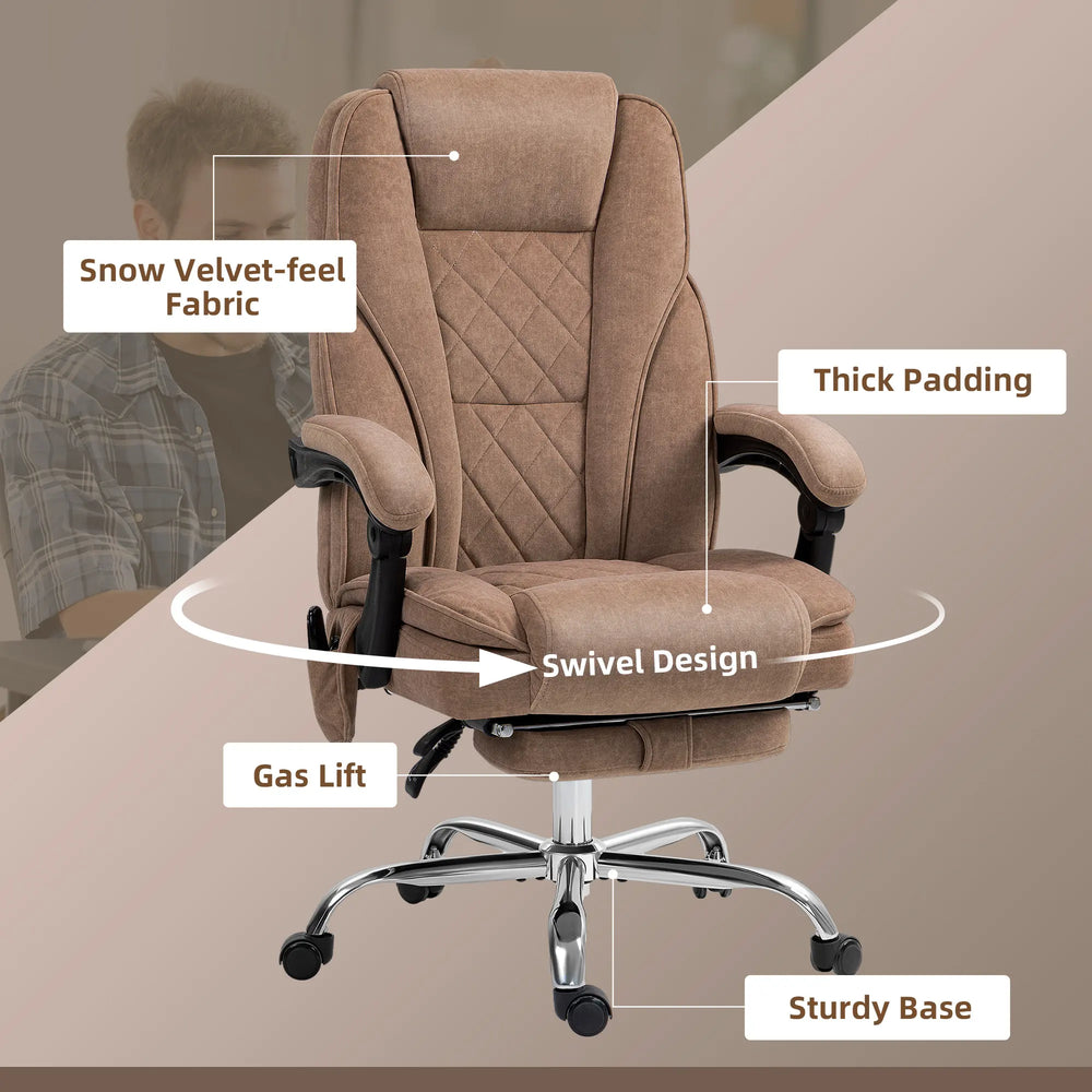 Vinsetto Massage Office Chair, Heated Reclining Computer Chair with Adjustable Height and Footrest, Brown