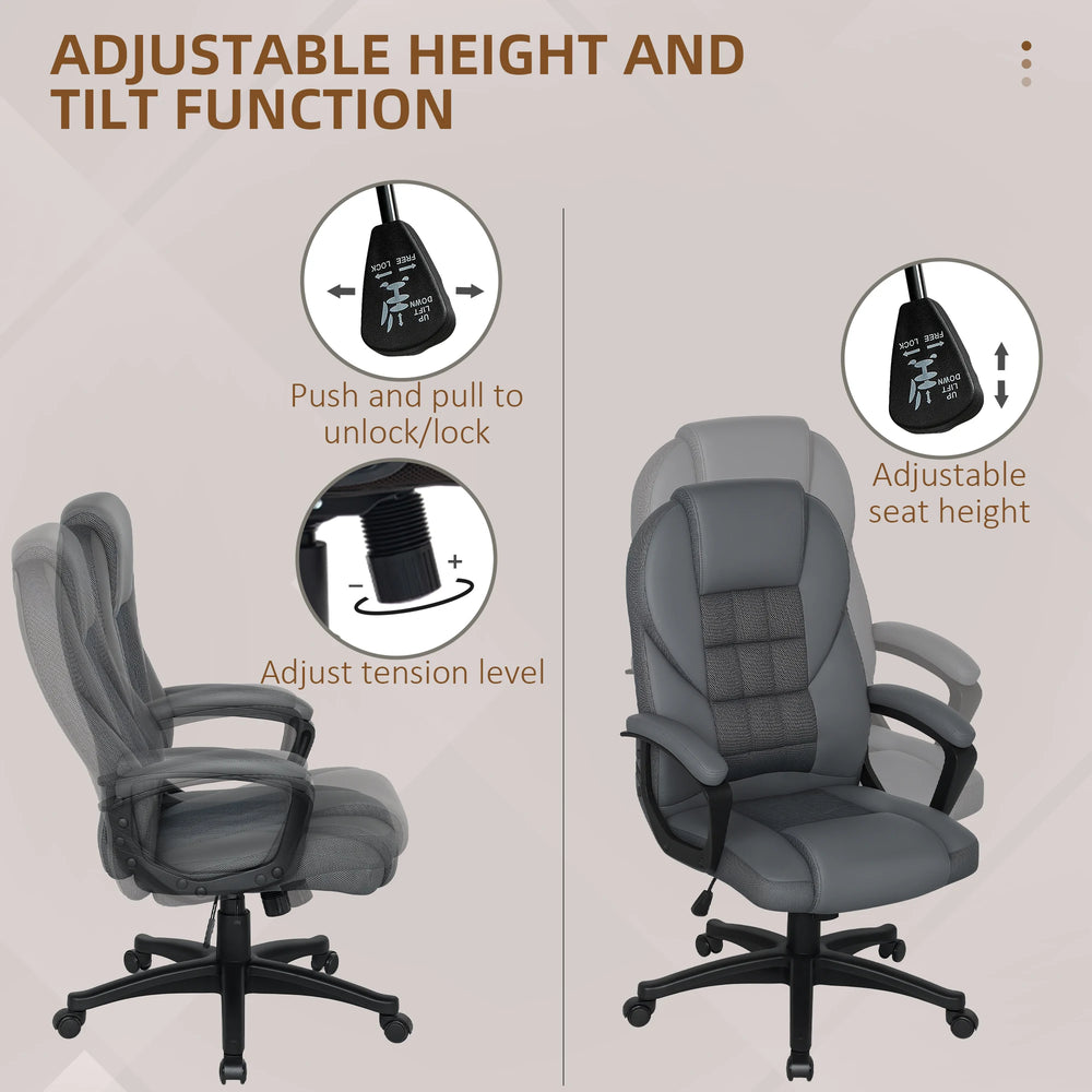 HOMCOM Faux Leather Office Chair - Charcoal Grey