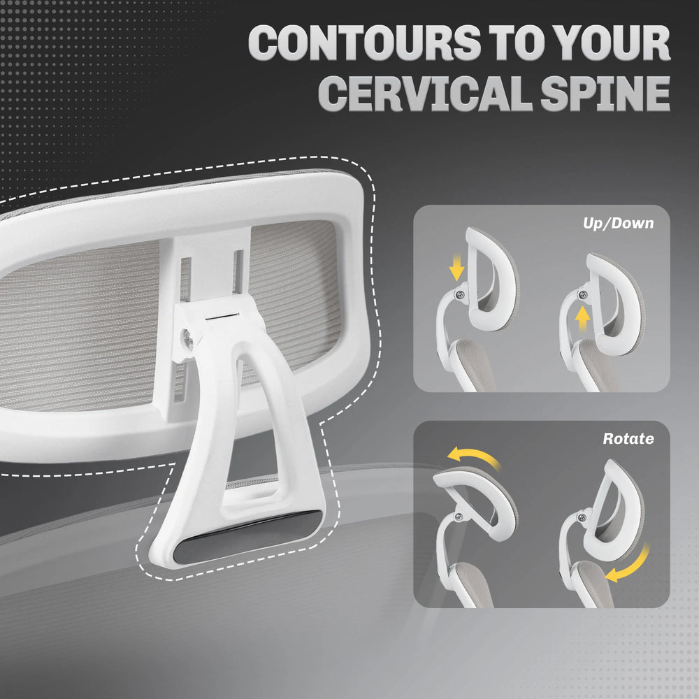 - Adjustable lumbar support and headrest: Easy to set parts of chair to the position you want - adapts to your unique posture for customised comfort whilst working. Headrest can also be removed if needed.