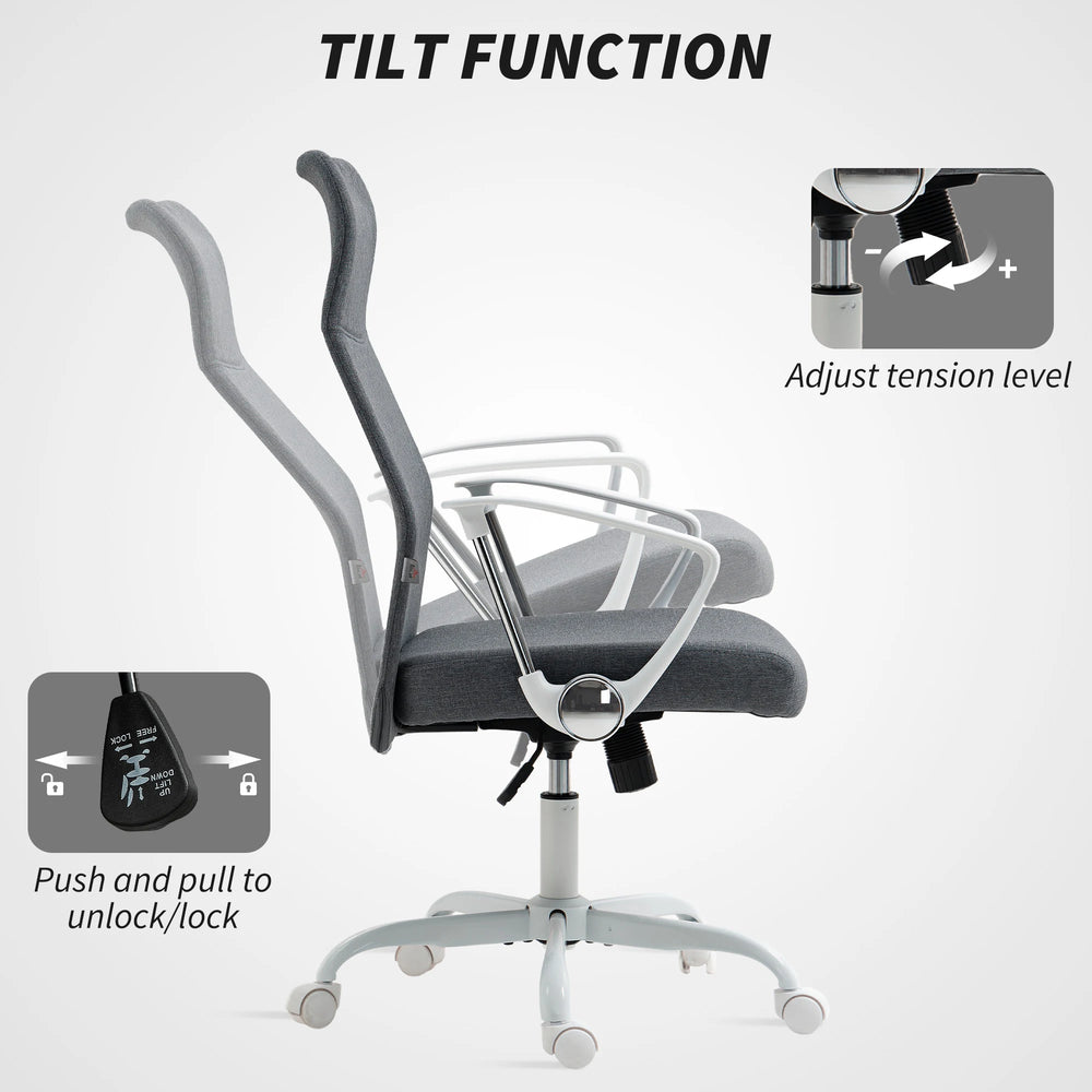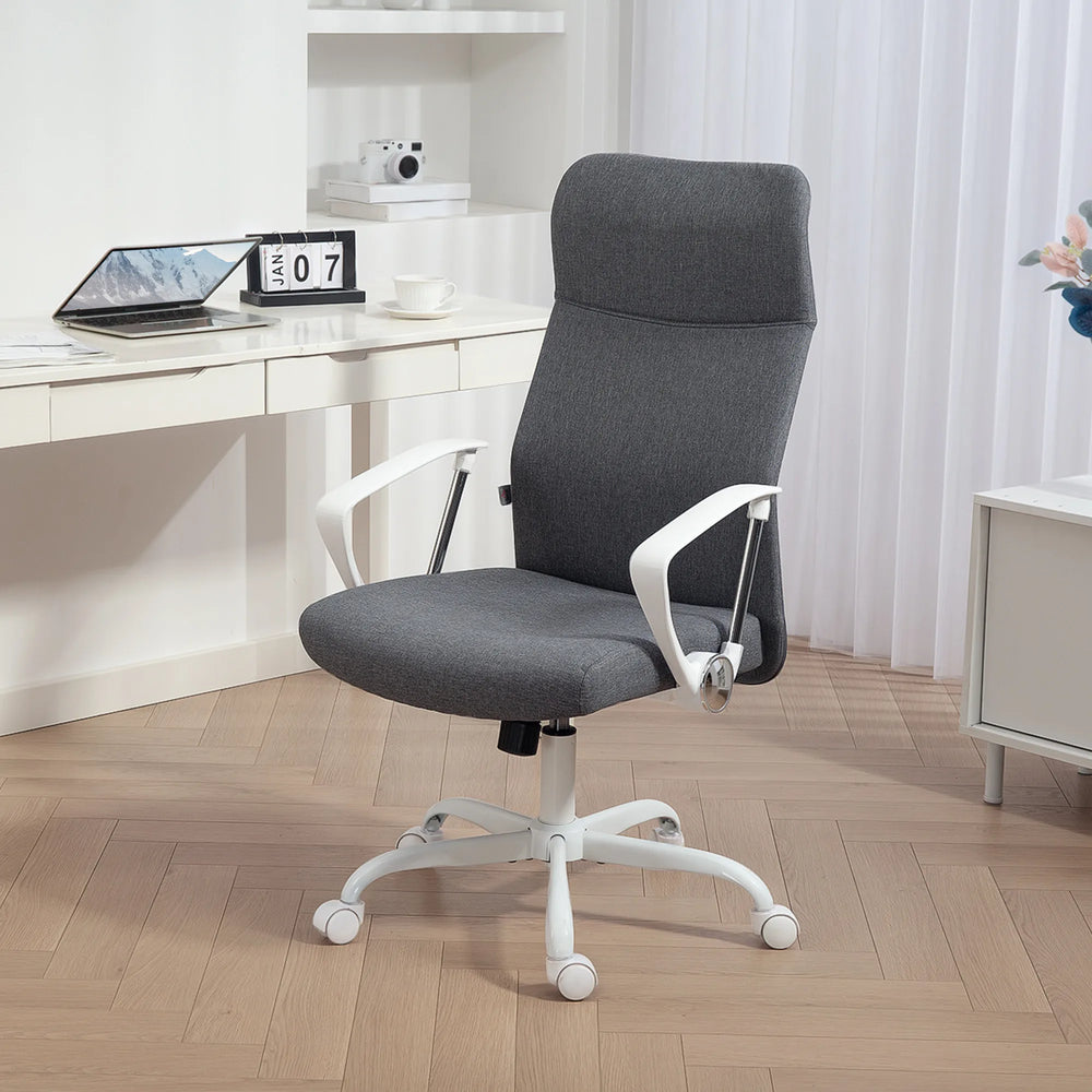 Discover the comfort of the HOMCOM high back office chair, designed with a high and curved back that supports from head to thigh, ensuring you stay comfy all day. Enjoy the smooth tilt function for a gentle rock, suitable for those pensive moments. Wrapped in the breathable linen-feel fabric, this office desk chair is the great addition to any home office or work setup.