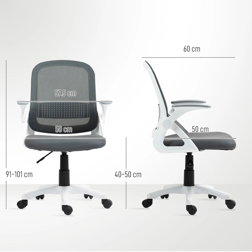 HOMCOM Breathable Mesh Office Chair, Ergonomic Swivel Computer Chair with Flip-up Armrests, Lumbar Back Support for Home/Office, Grey