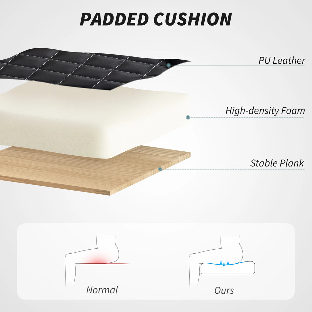 - High-density sponge filling for comfort, with sleek faux leather upholstery