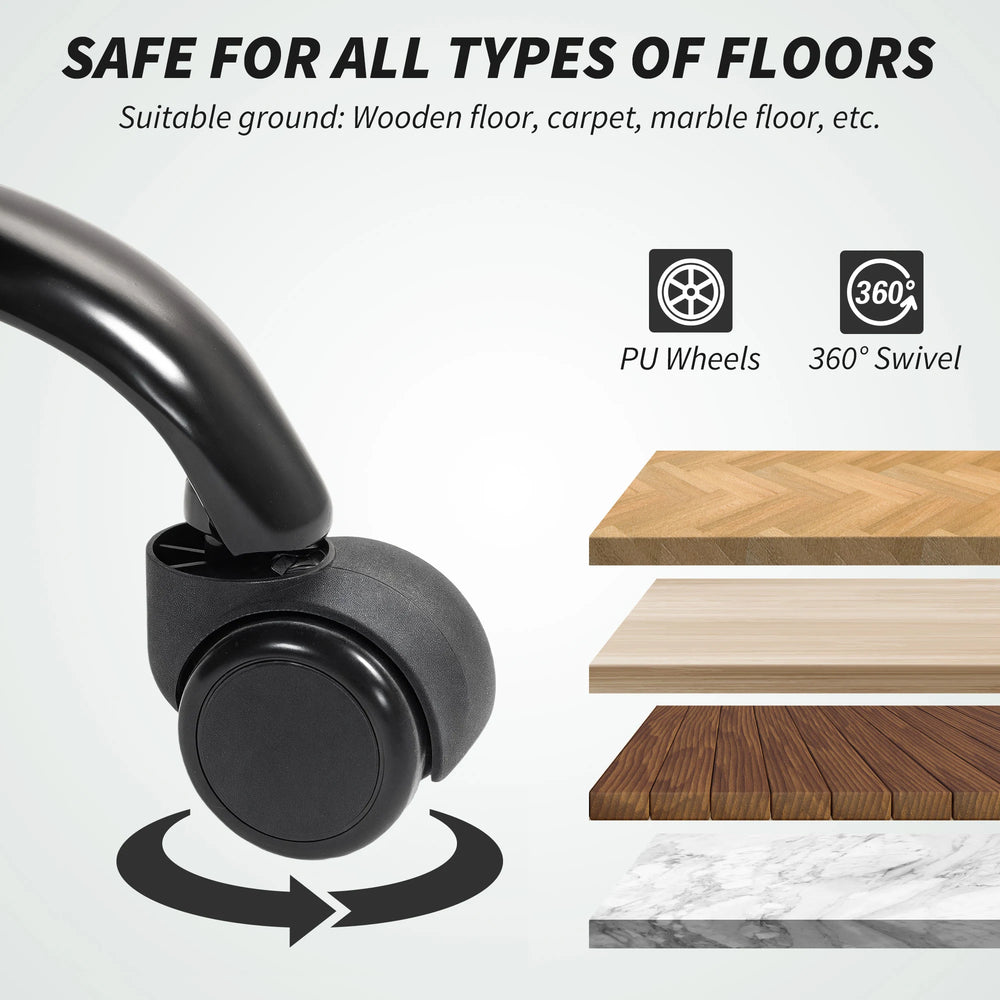 - Five wheels: SIlent-moving wheels on this computer chair glide smoothly across any floor, without making light marks and scratches. Easy to move chair around whenever you need.
