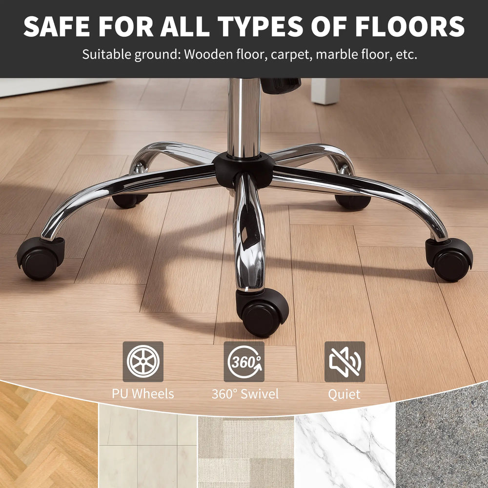 - Five swivel wheels: Easy to move desk chair around - both seated and empty. Seat also has 360 movement, which works in sync with your body movement.