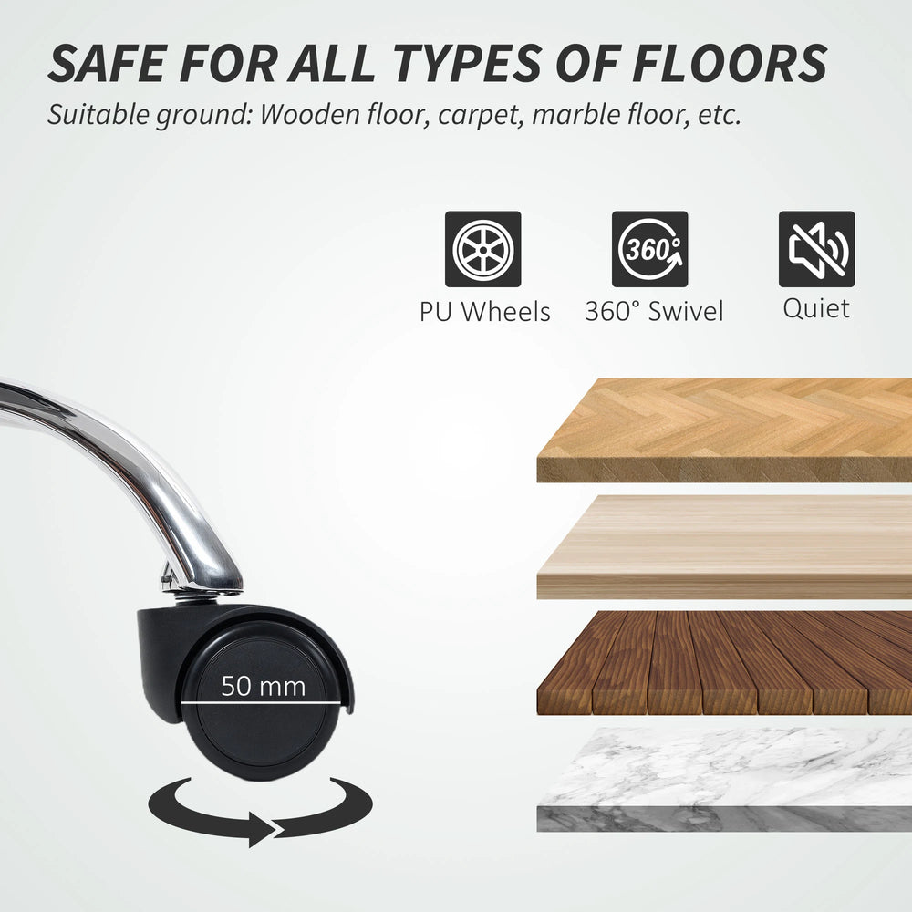 - Five wheels: Silent-moving wheels on this computer desk chair glide smoothly across any floor, without making light marks and scratches. Easy to move it around whenever you need.