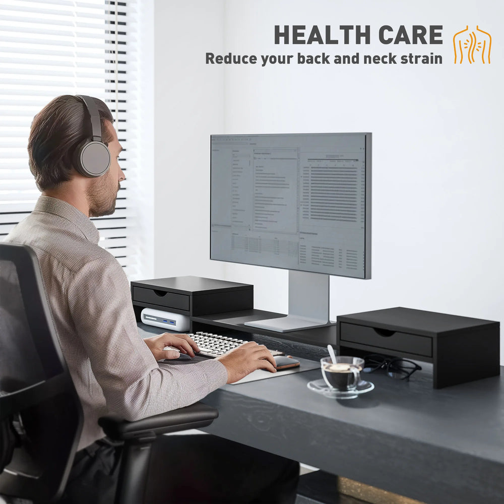 - Enhanced comfort: Elevate your desk monitor stand to eye level to reduce neck strain and improve posture, making long hours at your desk more comfortable
