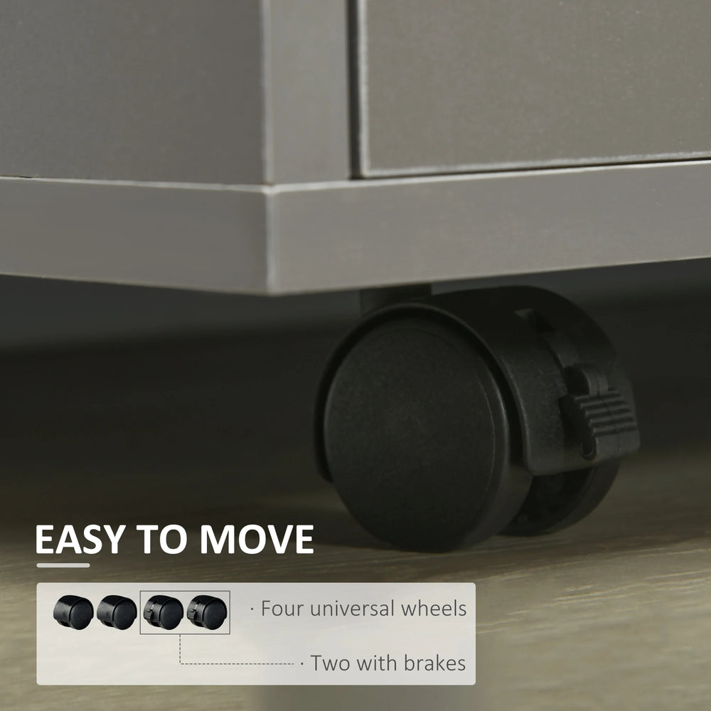 HOMCOM Freestanding Printer Stand Unit Office Desk Side Mobile Storage w/ Wheels 3 Drawers, 2 Open Shelves Modern Style 80L x 40W x 65H cm - Grey