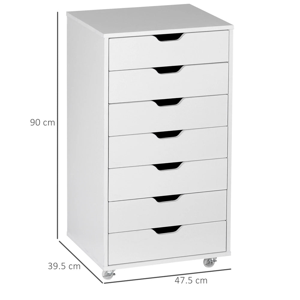 Vinsetto Seven-Drawer Filing Cabinet, with Wheels - White