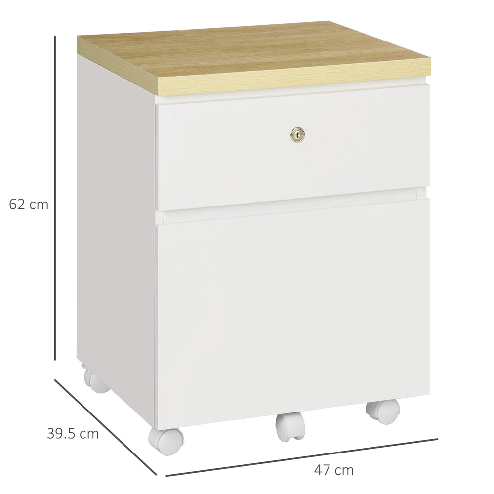 Vinsetto 2-Drawer Filing Cabinet with Lock, Mobile File Cabinet with Hanging Bars for Legal Size and Wheels, Home Office Study, White