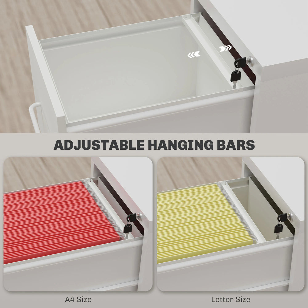 - Three drawers: Plenty of room for office files and essentials. Each drawer of lockable filing cabinet has an adjustable bar to hang A4 and letter size folders