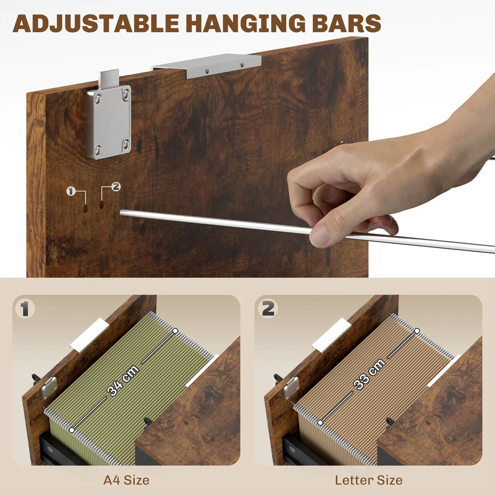 - Two drawers: Home office cabinet features a small and a big drawer. The two-level adjustable hanging bars in the big drawer are suitable for A4 and letter-sized files.