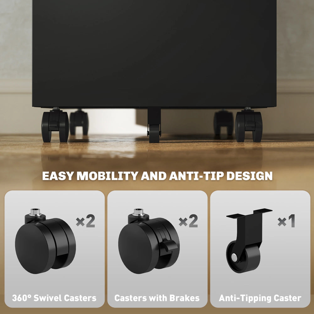- 360 swivel wheels: Easy to move office storage drawers around easily, even when heavy. Two brakes to stop in place as needed and an auxiliary caster to prevent tipping for safety and stability
