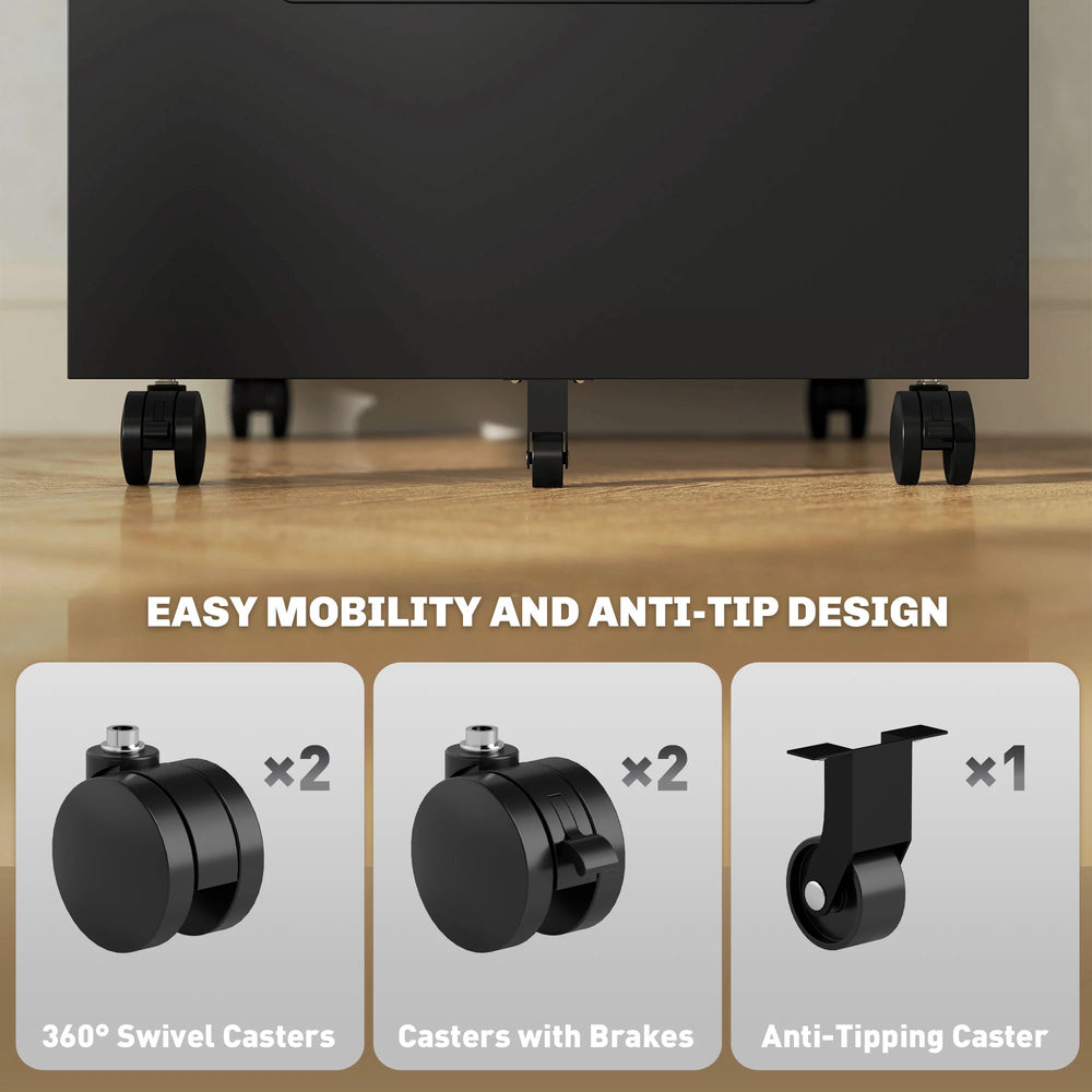 - 360 swivel wheels: Easy to move office storage drawers around easily, even when heavy. Two brakes to stop in place as needed and an auxiliary caster to prevent tipping for safety and stability