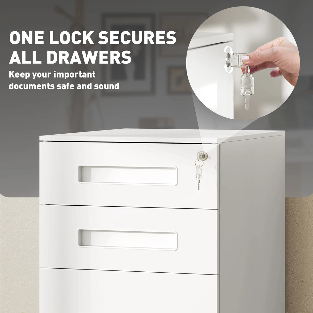 Vinsetto Three-Drawer Steel Filing Cabinet - White