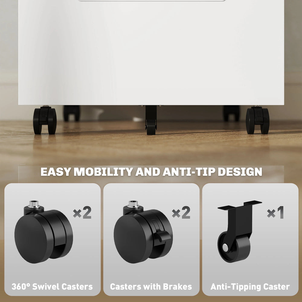 - 360 swivel wheels: Easy to move office storage drawers around easily, even when heavy. Two brakes to stop in place as needed and an auxiliary caster to prevent tipping for safety and stability