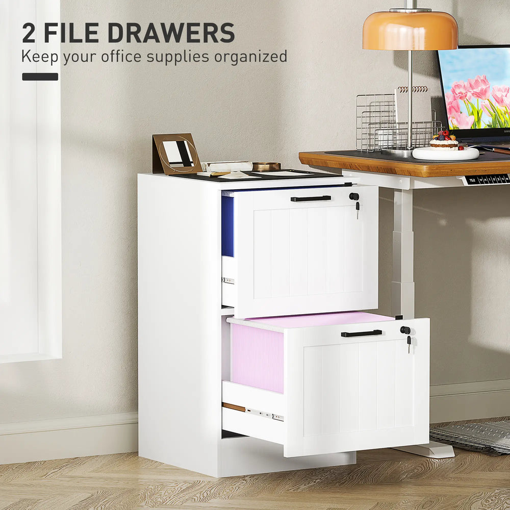 HOMCOM 2 Drawer Filing Cabinet with Lock, Office Storage Cabinet with Adjustable Hanging Bars for A4 Letter Size Files, White