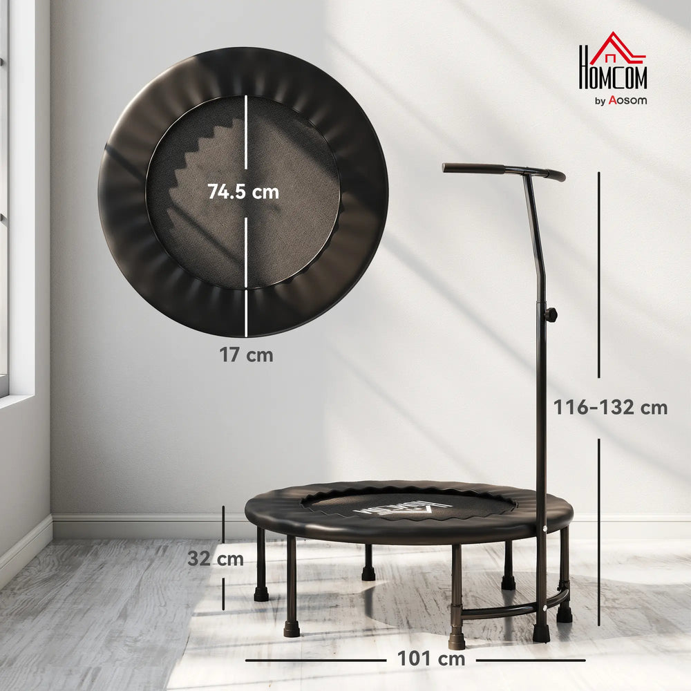 HOMCOM 40" Fitness Trampoline with Adjustable Handle, Rebounder Trampoline, Mini Jumper for Indoor Exercise Workout, Black